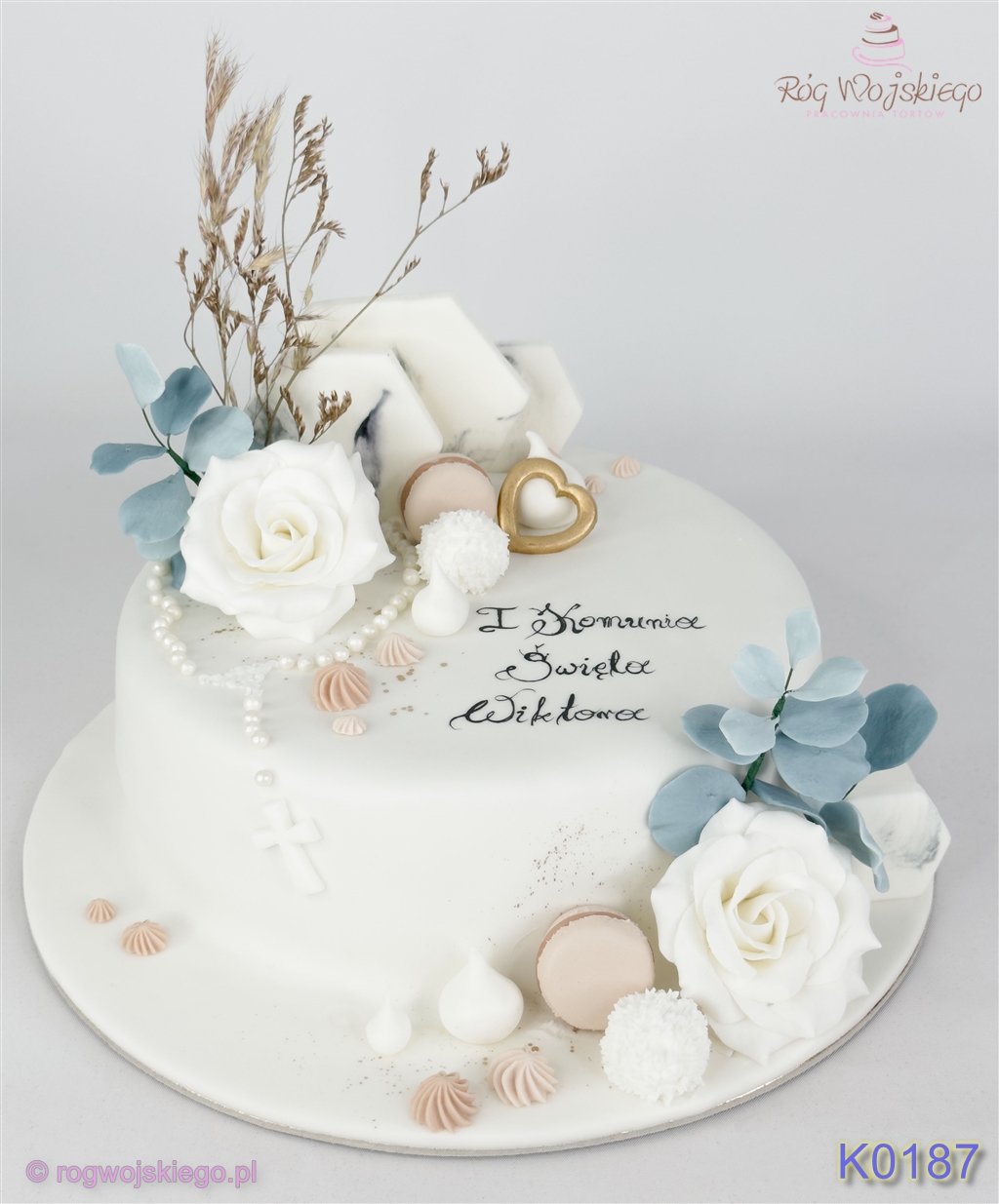 Subtelny i piękny tort ozdobiony kwiatami – idealny wybór na uroczystość pierwszej komunii świętej. Elegancja i słodka przyjemność w jednym, aby ten wyjątkowy dzień był niezapomniany.